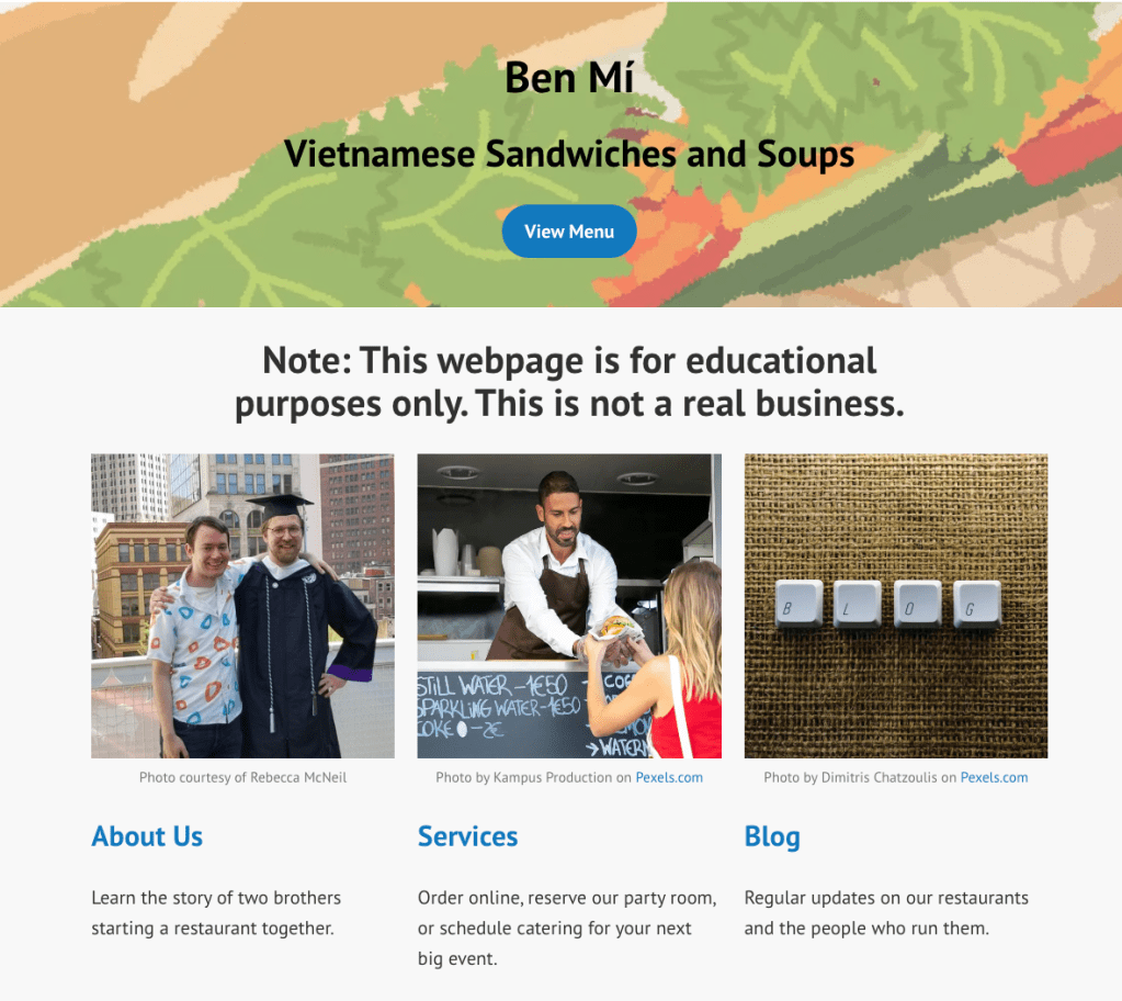 For this project, I was tasked with creating a WordPress site for a fictional business in order to drive more traffic. I chose to create a website for a Vietnamese fusion restaurant founded by me and my brother.